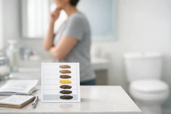 Toilet lighting, colored cleaners, and even dehydration can make stool appear lighter or more yellow. It can help to look at patterns rather than one isolated stool: repeated pale-yellow stools plus digestive symptoms carry more meaning than a single “odd-looking” bowel movement.